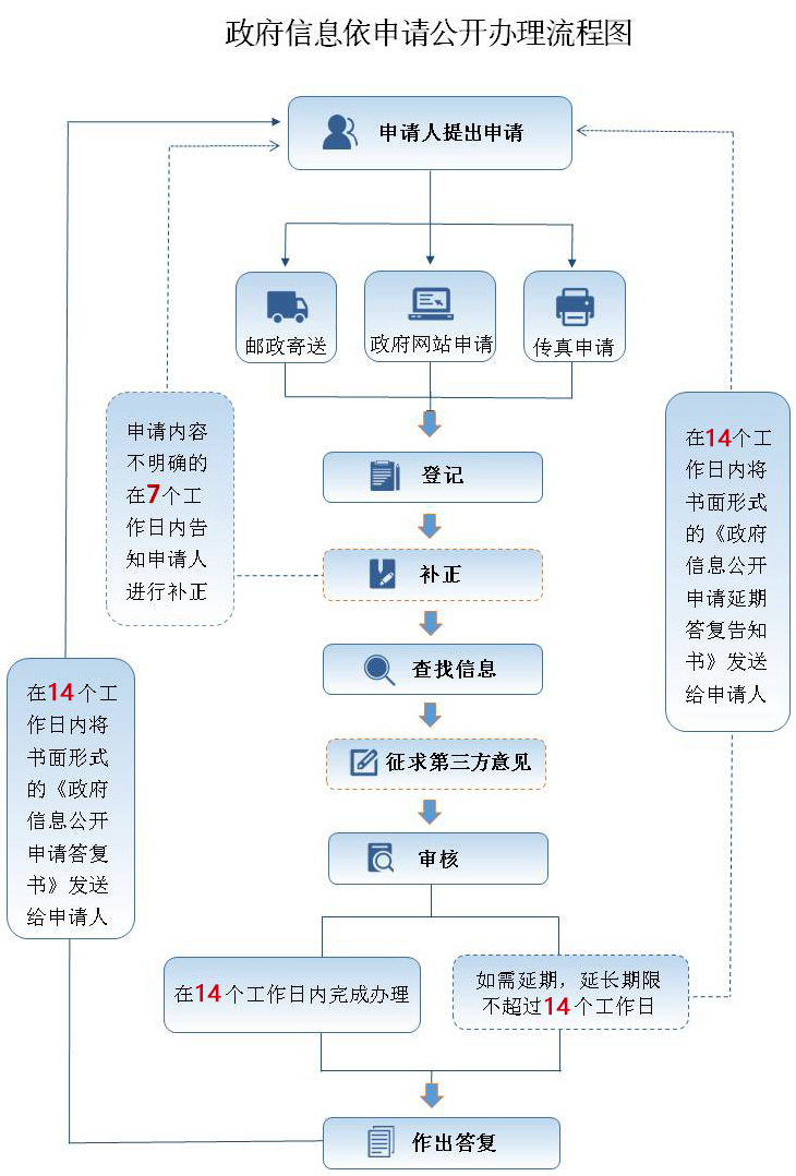 2、本机关将自收到申请之日起20个工作日(一般情况下不超过14个工作日)内作出申请答复。需要延长答复期限的,在答复期限内告知申请人,延长的期限不超过20个工作日。